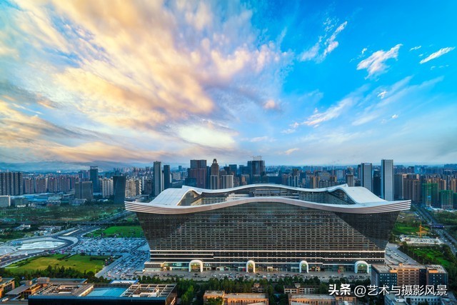 成都环球中心坐落于成都市高新区,其建筑规模堪称世界之最,占地面积达 170 万平方米,宛如一座宏伟的城市地标。它由知名设计公司精心打造,设计风格独具匠心,与北京大兴国际机场同出一源,尽显现代建筑的雄浑与大气。