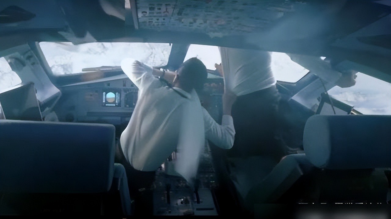 就在这时,风挡玻璃全部炸开,气压差将副驾驶拉出窗外,上半身直接暴露在外面,由于在安全带的保护下,他才没被完全吸出去,同时驾驶舱的门也被打开,客舱内物品到处乱飞。
