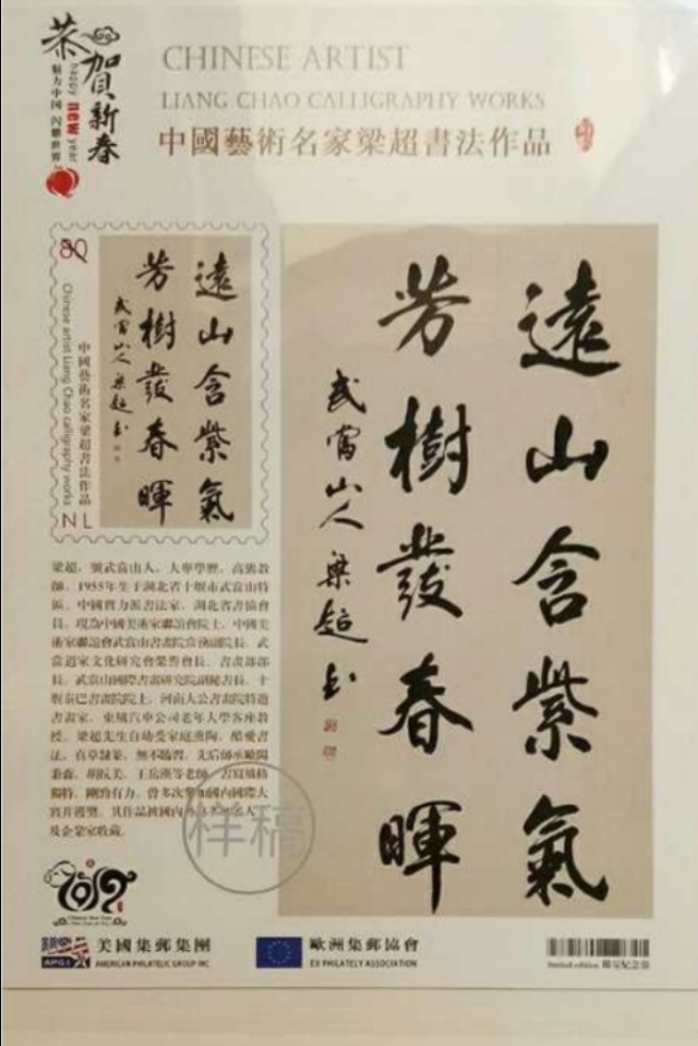 书法家梁超,号武当山人,大专学历,高级教师。1955年生于湖北武当山,现居湖北省十堰市武当山特区。中国实力派书法家,中国书法家协会会员,湖北省书法家协会会员。现为中国美术家联谊会院士,中国美术家联谊会,武当山书画院副院长,中国武当山道家文化研究会荣誉会长,书画部部长,武当山汉韵书画院院长,武当山国际书画院副秘书长,十堰秦巴书画院院士,河南大公书画院特邀书画家,东风汽车公司老年大学客座教授。梁超先生,自幼受家庭家庭熏陶,酷爱书法,真草隶篆,无不临习。先后师承欧阳秉森,胡抗美,王岳汉等老师。书写风格独特,刚劲有力!多次参加国内国际大赛并获奖,其作品为国内外需多知名人士,团体及企业家收藏。特别值得一提的是,2018年多幅作品入选“魅力中国,闪耀世界――世界邮票上的中国艺术名家”,2019年,受邀参加“庆祝中华人民共和国成立70周暨澳门回归祖国20周年艺术大展”。其艺术成就享誉国内外!梁超,电话15090967663王老师(助理