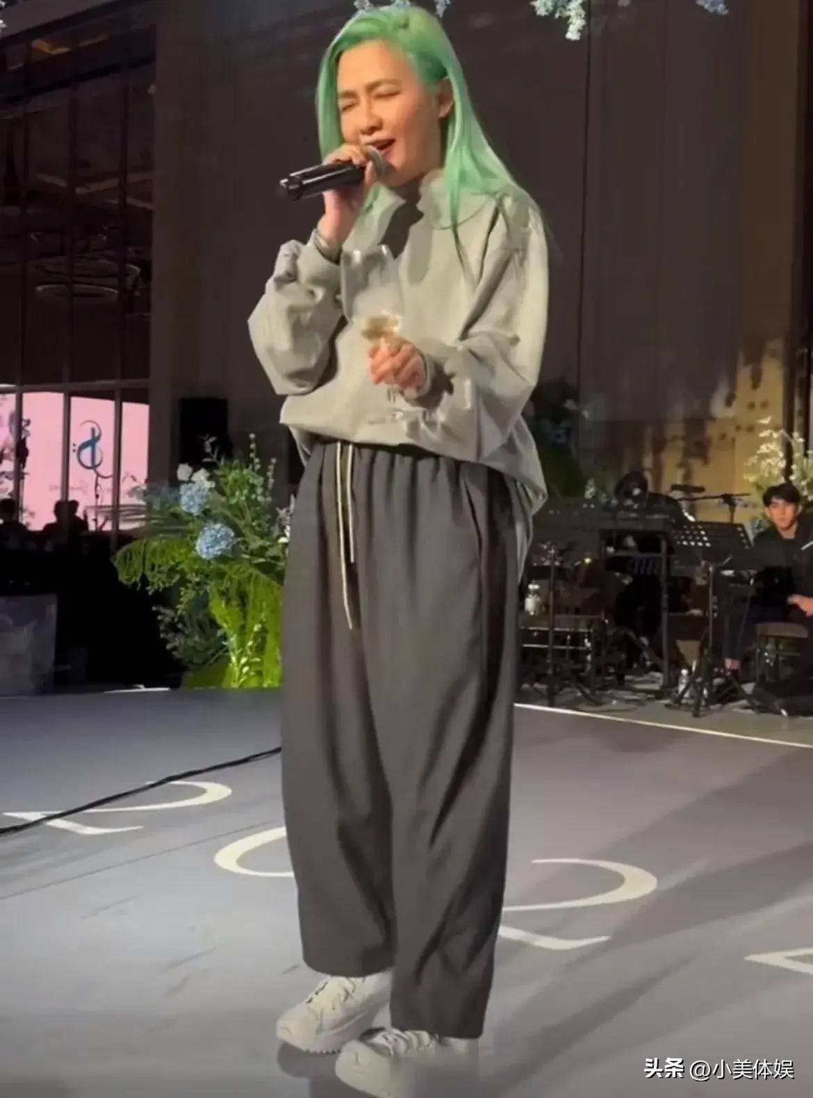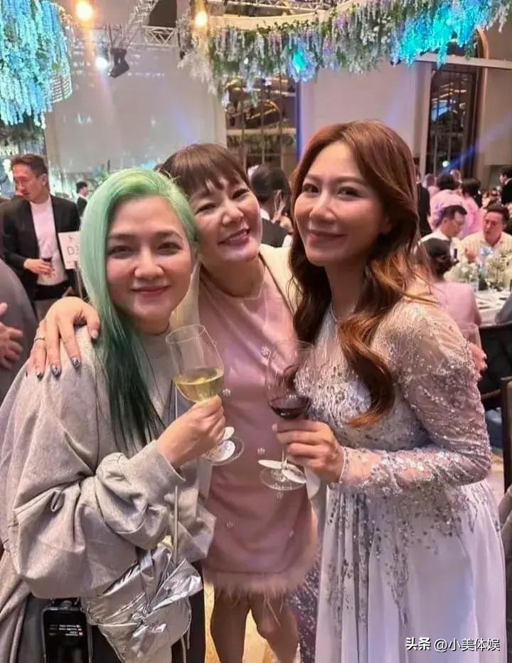 47岁范晓萱一头绿发出现在萧敬腾婚礼上,近照大变样,胖到认不出