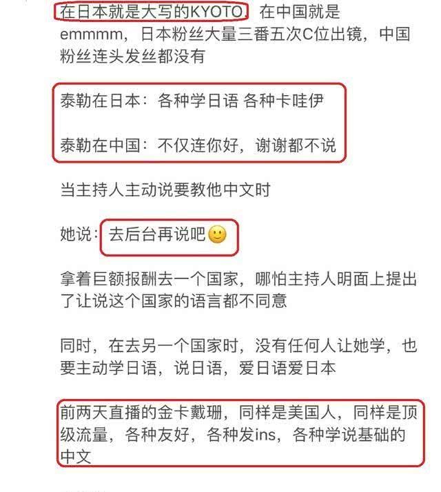而且,中国网友习惯用微博,但是霉霉没有微博;日本网友习惯用ins,所以霉霉发ins。非著名娱评人吴清功指出:这个理由倒是解释得通,但是“不说中文”这件事,却有点解释不通!霉霉到底是情商低,还是故意“不说中文”呢?这是个谜!