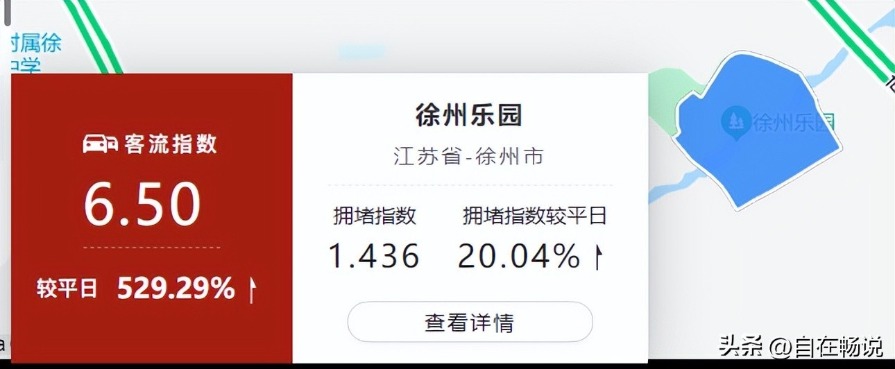 徐州乐园排名第五,客流指数达到6.5,较平日上涨529.29%。
