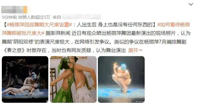 当然也有人站在杨丽萍的一边,认为她是在为艺术献身,批评者的思想太过封建。然而,大部分的评论仍然是批评和质疑的声音。