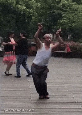 大爷搞笑动图:不如跳舞,谈恋爱不如跳舞。