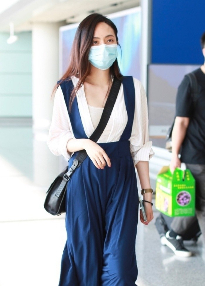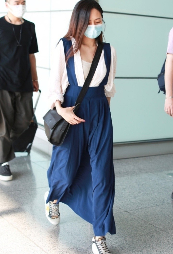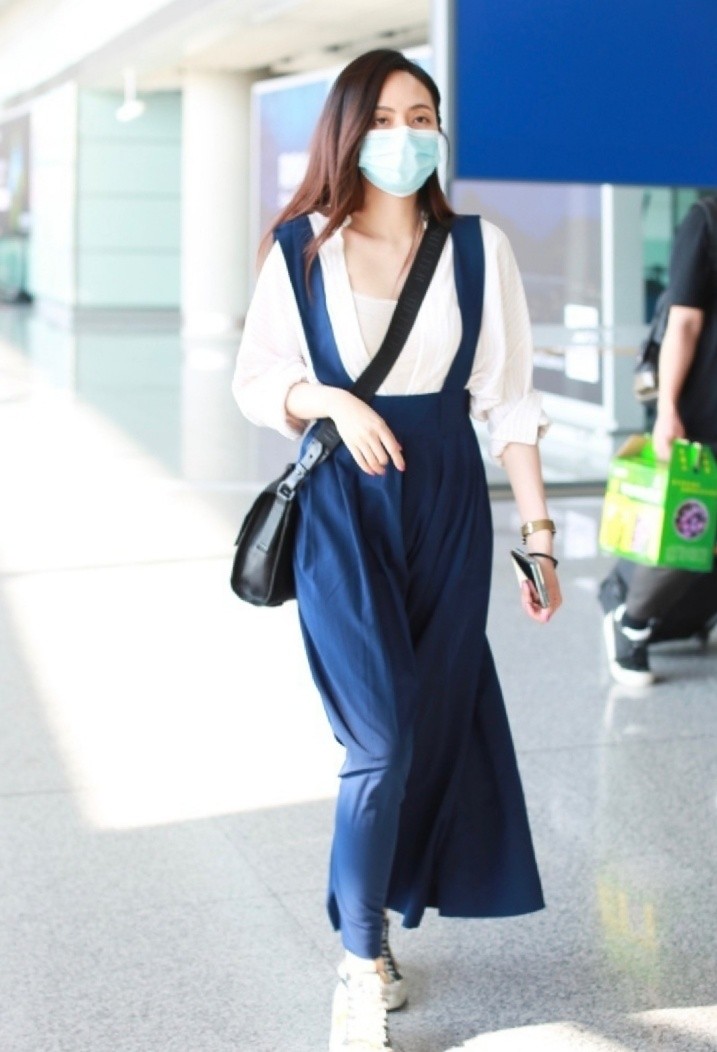 近日刘惜君现身机场打扮休闲,却是一脸的疲惫,引起了人们的关注。我们看到刘惜君身穿着一身蓝色的背带裙,上半身搭配的是一件比较端庄的白衬衫,把衬衫里面还搭配着一件白色的内搭白衬衫的纽扣,解开打造出一种V领的效果,露出了胸前大片的肌肤,还是非常有诱惑力的。