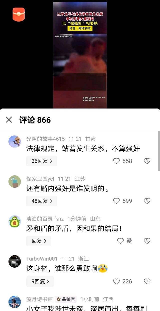 这也反应出一个问题,有的女性想拿强奸法来干坏事,比如勒索、分财产,甚至还有婚内强奸不知道是谁发明的。