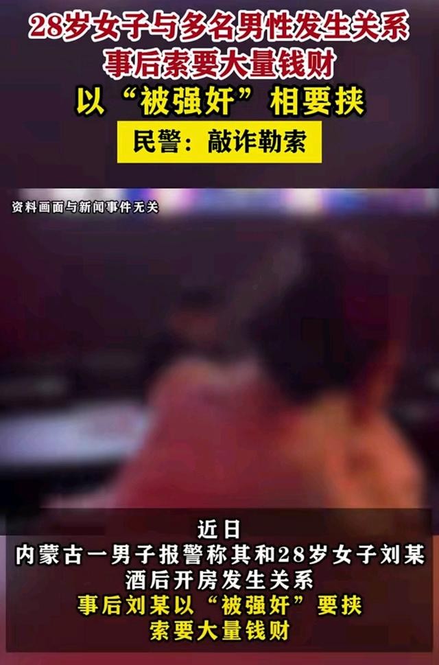事情发生在内蒙古,这名女子是刘某,她通过社交软件与多名男子网上聊天,之后把男的约出来并自愿去酒店开房。