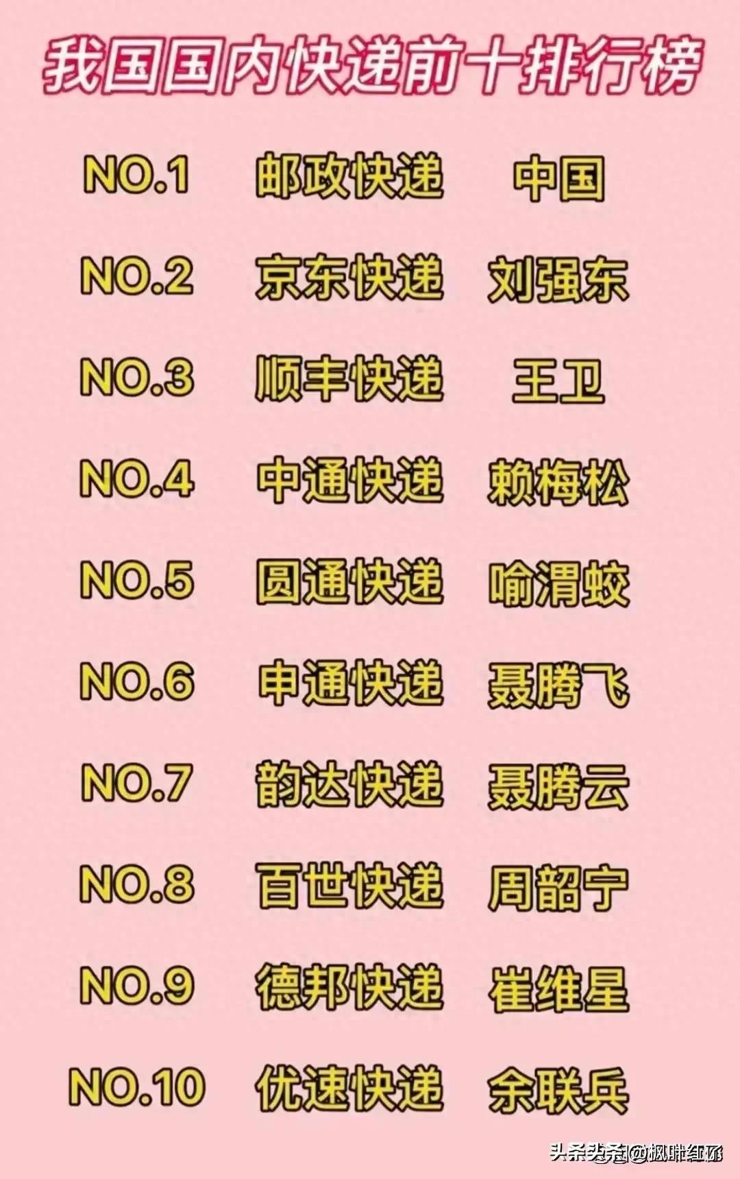 我国国内快递前十排行榜,涨知识了,收藏起来看看吧
