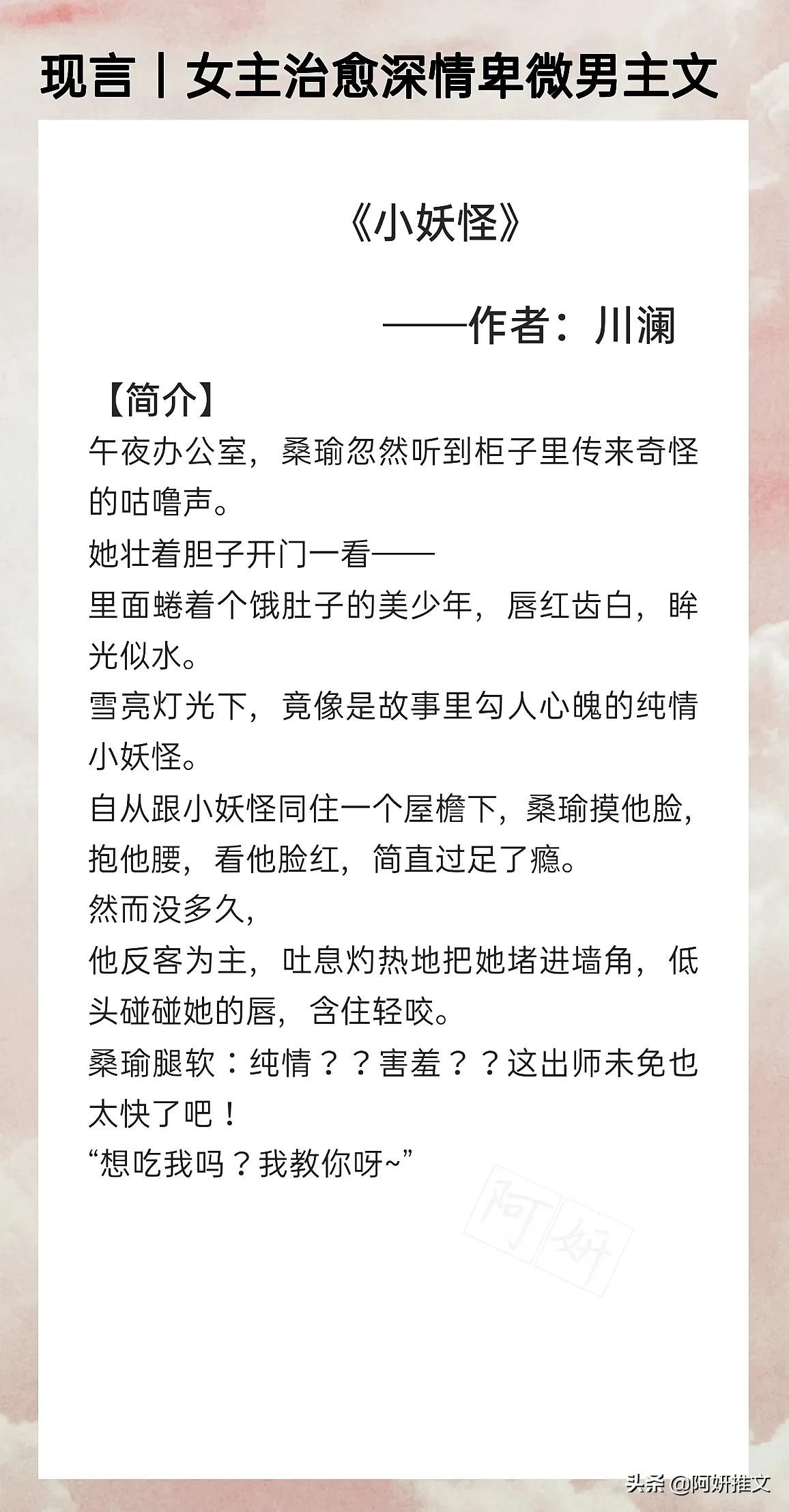 嗨大家好:我是阿妍,你们的小可爱带着热乎乎的小说文案来了。
