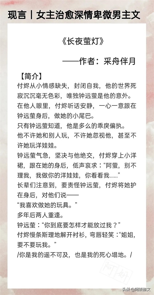 女主治愈深情卑微男主:《长夜萤灯》偏执病娇男主x温柔善良小姐姐