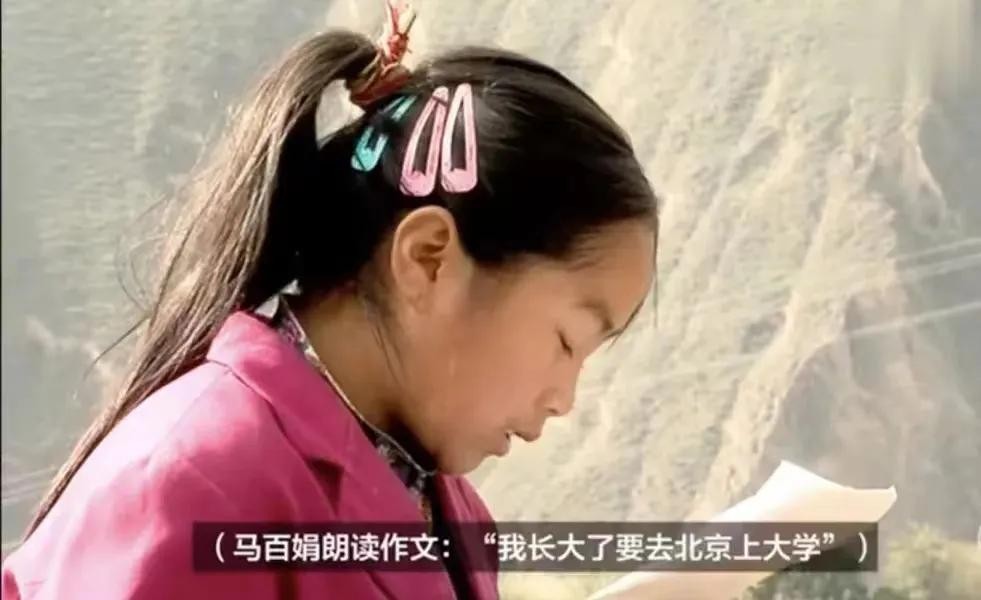 这个甘肃女孩名字叫马百娟,12岁的她每天都要行走十几里的盘山路上学。