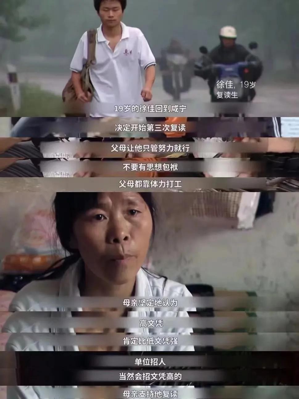 这个年轻人名字叫徐佳,今年19岁,是一个复读生。他出生在湖北农村,在他们村子里,能出个大学生并不容易,所以,对于徐佳而言,金榜题名不仅可以找一个好出路,也可以成为整个家族的荣耀。