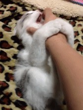 被打断的小猫又气又不舒服,只能够抱着你犯罪的手一顿猛操作,不得给你一个教训,你还不懂小猫它啊生气咯!