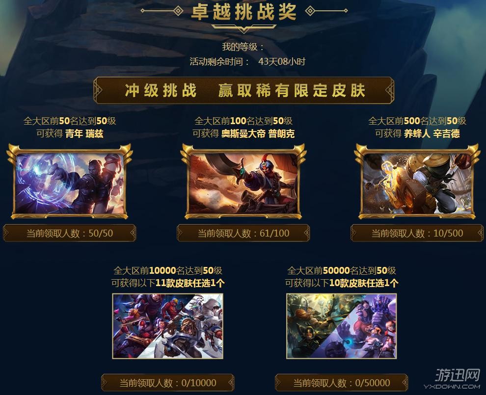 这次冲级挑(爆)战(肝)活动,前50000名到达50级的玩家都有皮肤奖励可以领取,前50名更是可以直接领取青年 瑞兹!