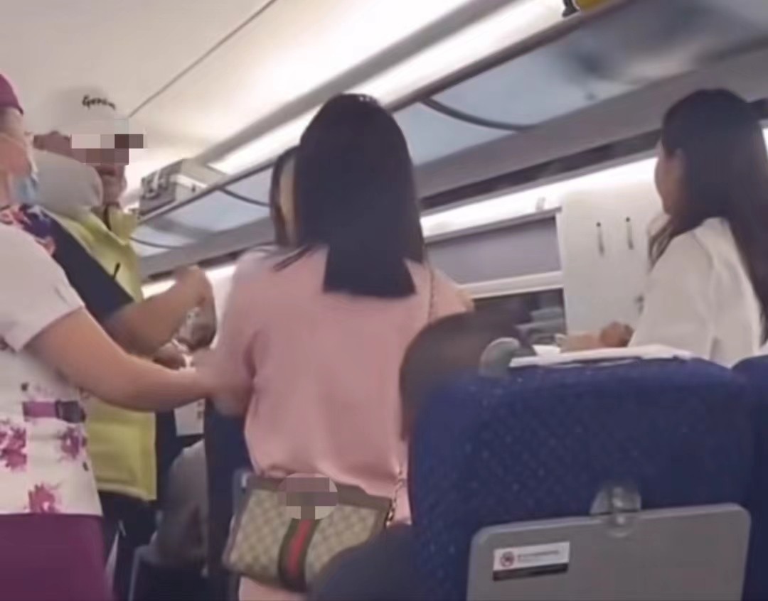 5月2日,在C6276次列车上,一女子独自乘坐高铁时,因不堪忍受后排熊孩子玩闹撞了她的椅背,起身回头制止。