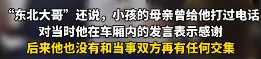 东北大哥认为派出所处理的没毛病,按照正常流程走就完了,小孩母亲曾给他打过电话,对他在车厢内的发言表示感谢,后来他再也没有和双方有任何交集。