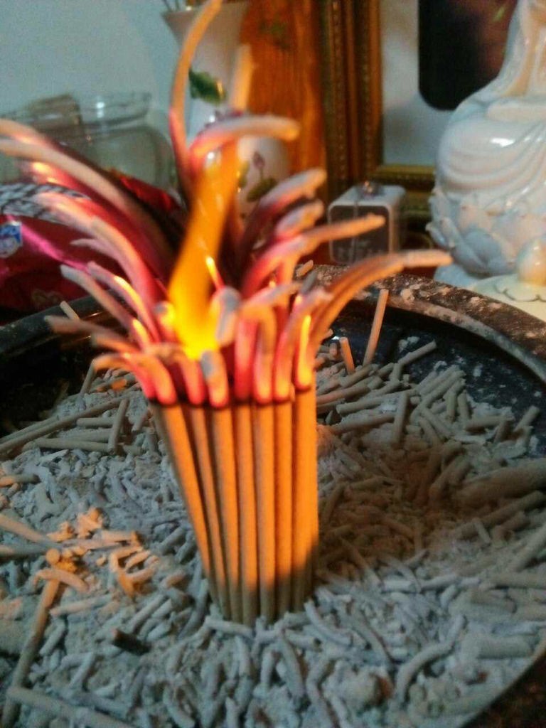 那她们是怎么看香的呢?我看到的给大家分享一下:第一步,面对每一位新看客,她都会点燃一把香,她们点完香以后要问问看客的目的。关于看香的目的有很多,有的人今年生意很顺,想知道明年会怎么样;有的人家里东西丢了,想知道是什么人偷的;有的人子女在上学,想问问孩子的前途.......,只有你想不到的,没有看香的遇不到的。