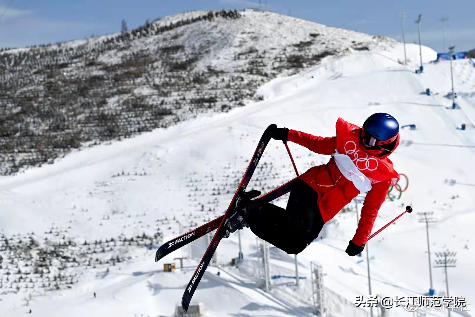在自由式滑雪项目中,空中技巧是我国的传统优势项目,极具竞争力。运动员李妮娜曾在世锦赛荣获三连冠,韩晓鹏在2006年都灵冬奥会上夺得男子空中技巧金牌,为中国实现金牌零的突破。而今年谷爱凌在北京冬奥会的女子大跳台和U型池项目中夺得金牌,再次书写了中国自由式滑雪的历史。