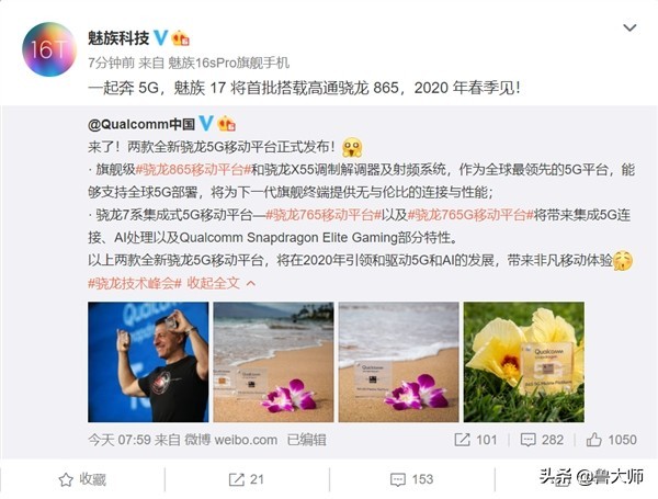 此前,魅族已正式宣布,魅族17将会是首批搭载骁龙865的双模5G手机,2020年春季亮相。