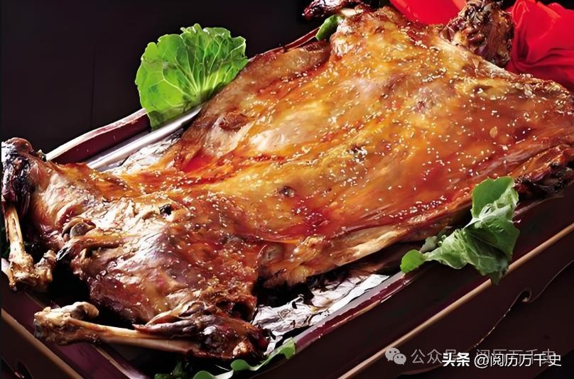 烤羊腿是将整只羊腿经过腌制后,在炭火上烤制而成,外皮焦脆,内部肉质鲜嫩多汁。