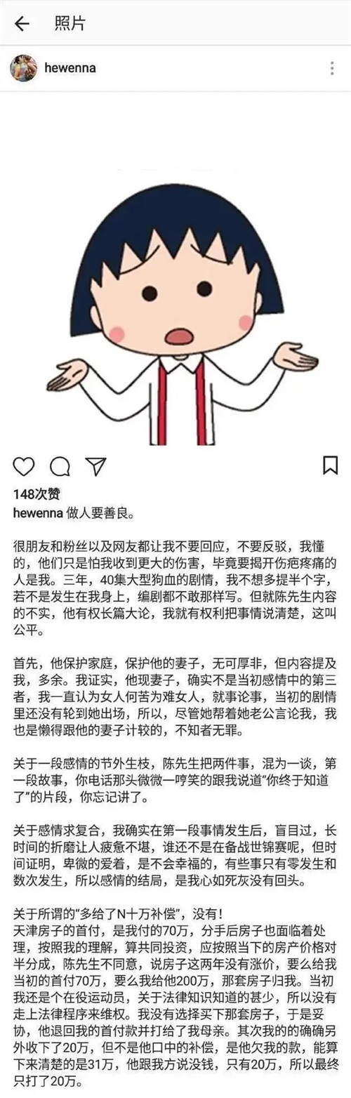 此话一出,不光网友瞠目结舌,就连何雯娜也坐不住了,发文回应了这件事,承认陈一冰的现任妻子并不是他们当初感情中的第三者,但坚决不承认这几十万的分手费。
