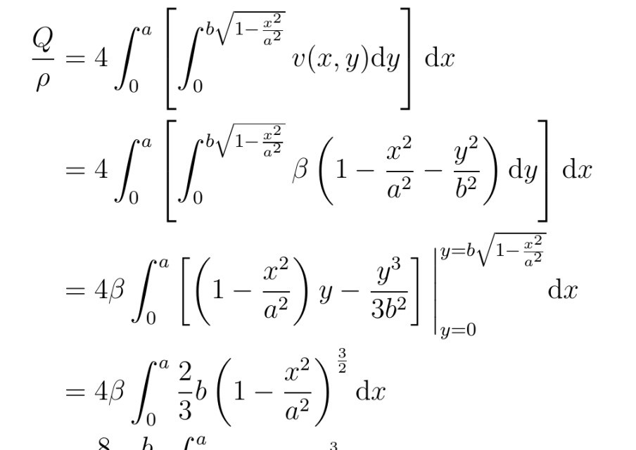 最后,张教授对流速分布函数进行积分运算,得到了椭圆管中粘性不可压缩流体的流量公式。这个公式不仅具有理论价值,还可以为工程设计和实际应用提供重要参考。