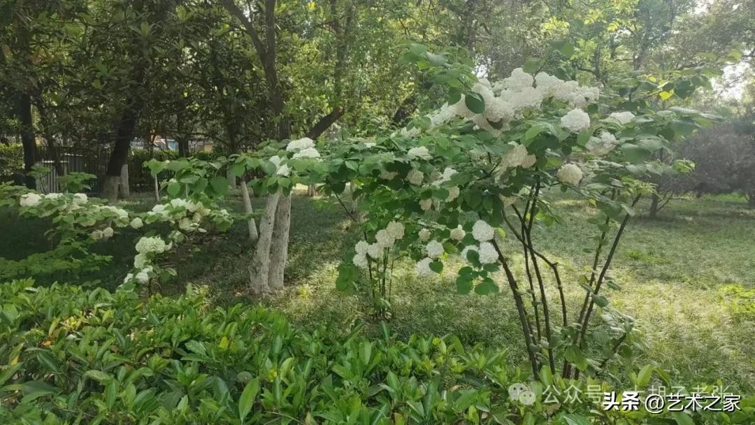我去时,正逢暮春初夏,花红草绿,一片欣欣向荣景象。特别是这个粉白的绣球花第一次见,真是美到我了。请大家欣赏。