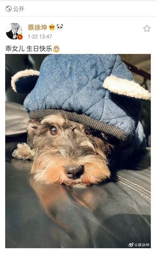 一年后蔡徐坤为爱犬庆生,晒了一只狗,还有小蛋糕配图,据狗狗外形看,这就是朱正廷睡三个小时只为陪队友买狗的那只雪纳瑞吧!