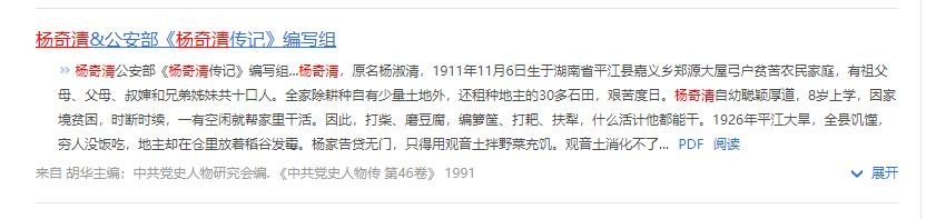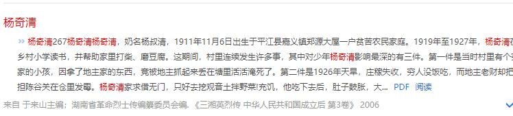杨奇清,1911年11月出生在湖南平江县嘉义乡的某个贫困村里。