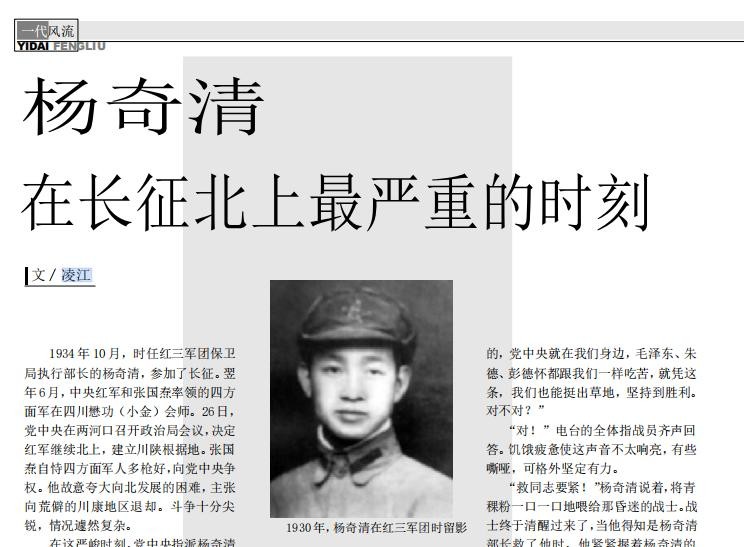 经历过多次反“围剿”和红军长征后,杨奇清算是红军的骨干力量。