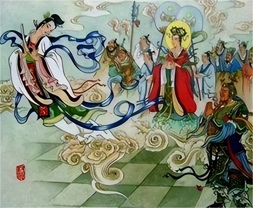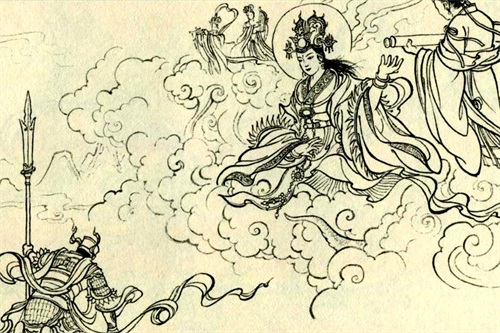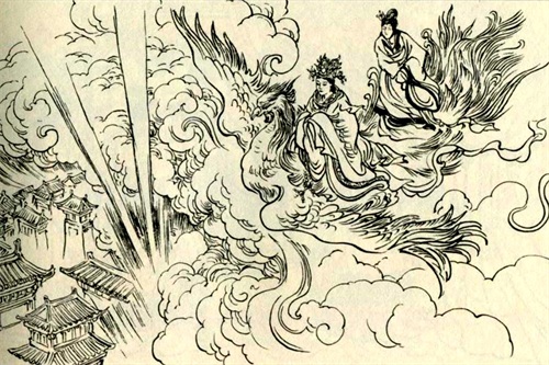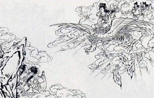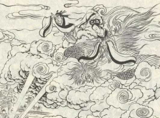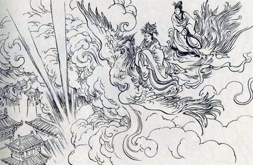女娲驾着祥云,离开了昆仑山。