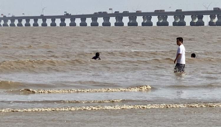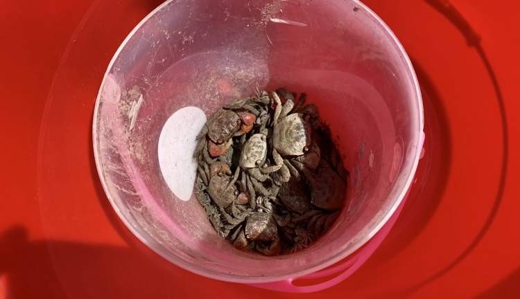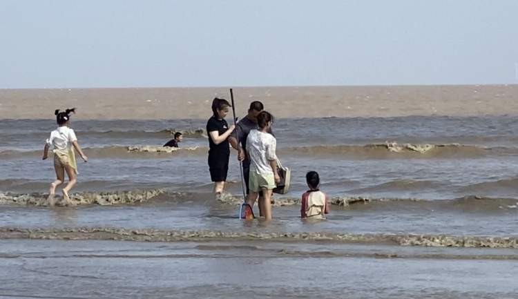 因为海水看上去并不清澈,因此真正下到海里的人并不多。人们大多是在海滩上散步,踩踩海水、吹吹海风、看看风景。倒是在海滩上赶海的大人和小孩有不少,拿着小铲子挖贝类、抓螃蟹、找小鱼,有些还真是收获颇丰。