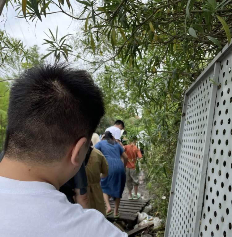 相比海滩上不错的体验,对于南汇新城海滩,网友们都在吐槽它门口的环境实在糟糕。记者探访发现的确如此,水泥地的上坡入口被封了起来,游客都只能从两侧都是淤泥的小树林里绕过去,还没到海滩不少人已经被溅了一身的泥。
