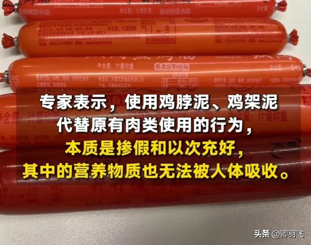 并且,还有专家表示,淀粉肠使用的肉不利于人体吸收,他们用的都是鸡肉泥等材料,来代替原有肉类。