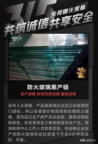 比如说,在今年315晚会上所爆出的假防火玻璃事件!