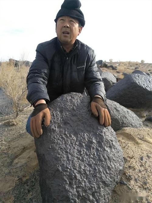 “那是一次很奇妙的过程,我甚至连金属探测器都没用上,只是远远扫了一眼,发现了个黑压压的东西。下车近看,果然是陨石。”