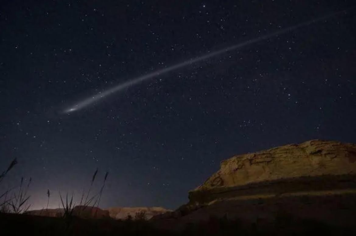 夜空中一道火光一闪而过,紧接着一颗黑色的陨石落在新疆的阜康。