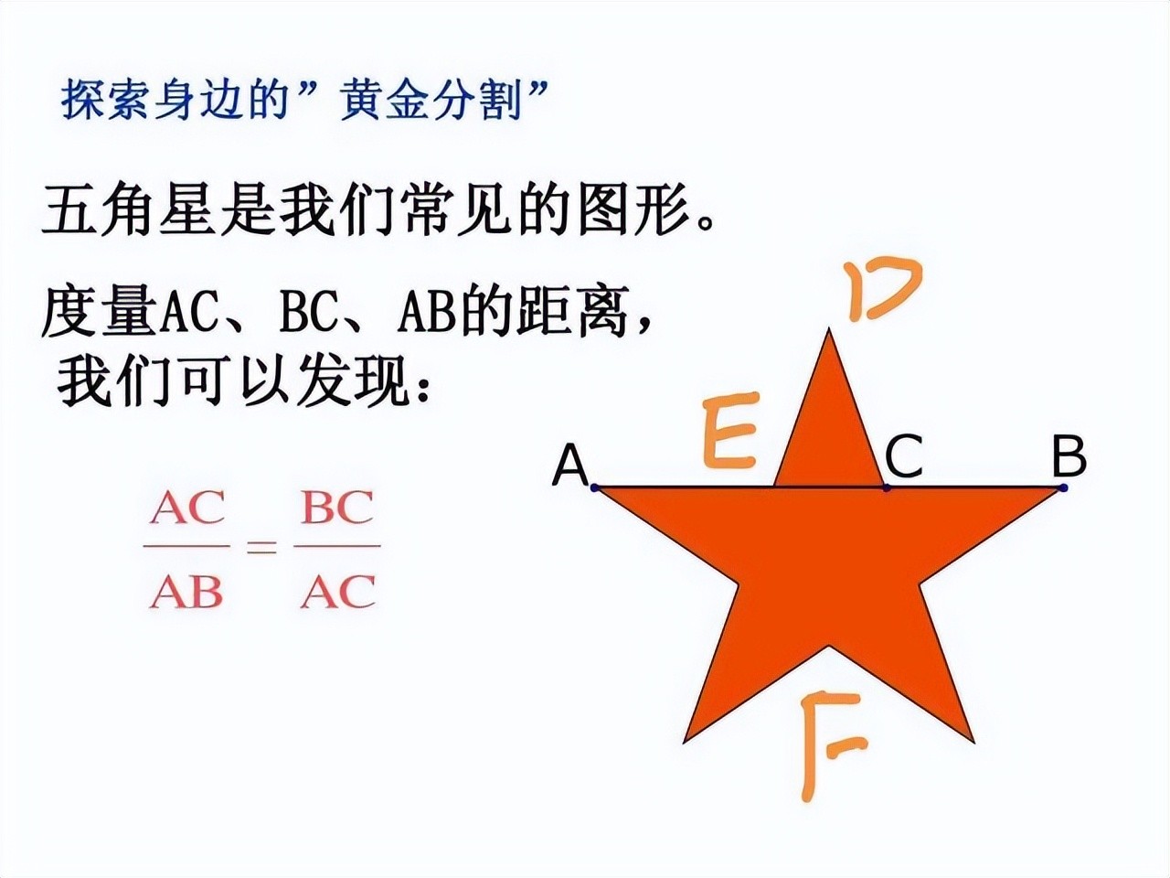 (3)三角形ABF也是黄金三角形,腰与底的比是黄金分割比。