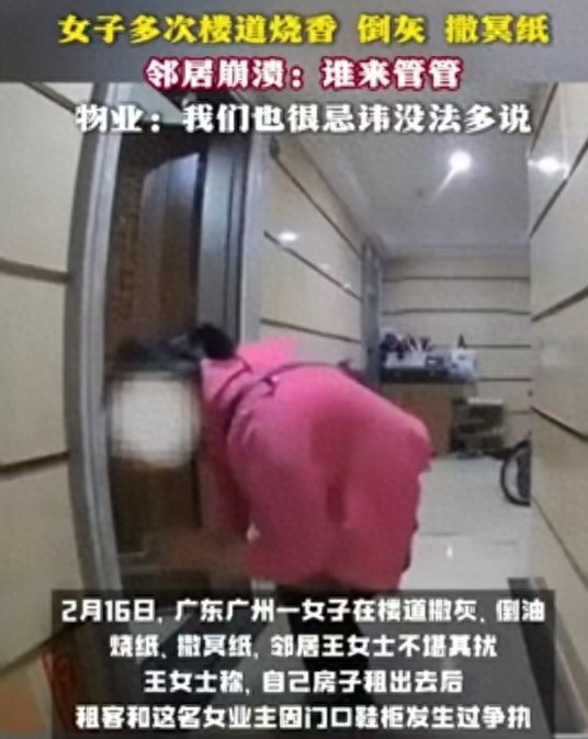 女子多次在邻居门口烧香倒灰撒冥纸 邻居崩溃:谁来管管
