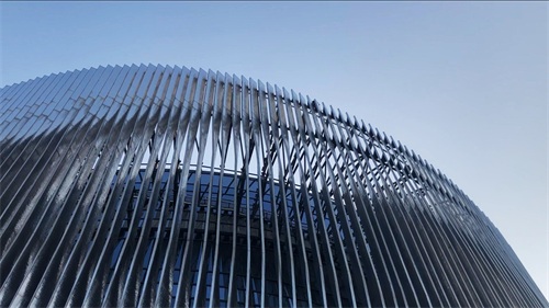 虹桥天地与高铁站直连,站在高铁广场即可见,全区仅此一家有此殊荣。如果你从虹桥高铁站或机场出来,想步行去站外的商场,那它(在高铁站西边)一定是你最佳的选择。它的立面设计得非常方正整洁,与商务区的风貌性格比较匹配。如不是几个大广告位,还以为是一家展览建筑或是比较高端的家俱场。金红色的调子似乎在宣传中国红色文化的特殊意义。“L”形的商场与演艺中心形成两个造型对比激烈的视觉效果,一眼便可辨识出演艺中心的特殊存在。它也是区域最具标识的一栋建筑,自然形成网红拍照打卡点。