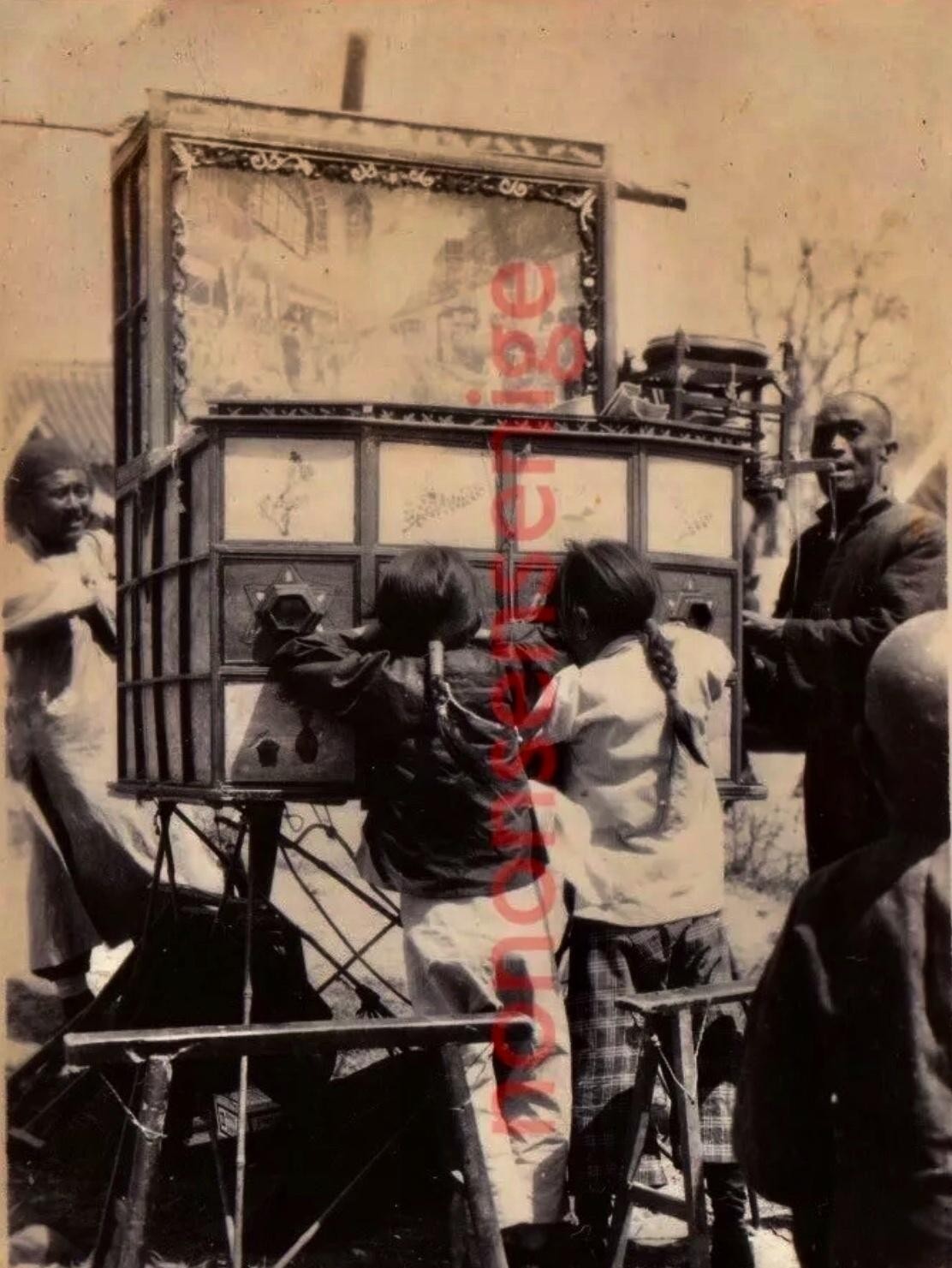 1937,威海卫。图1和图2,看拉洋片。图3,戏班子。图4,修伞。