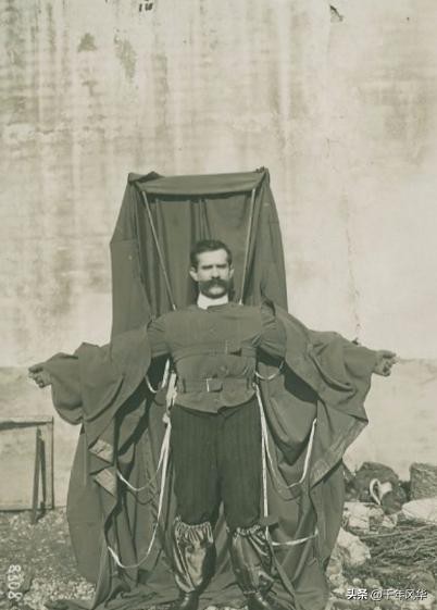 照片中的男人名叫弗兰兹·瑞切特,致力于发明降落伞,1912年,他穿着自己制作的降落伞,爬上了埃菲尔铁塔,毫不犹豫地从塔顶跳了下来。只不过,他的降落伞并没有起到任何效果,弗兰兹·瑞切特直接栽了下来,当场摔死了。