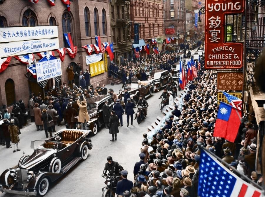 1943年2月,宋美龄女士访美。一次非常成功的公关和抗日宣传。所到之处欢迎场面热烈。华人更是欢欣鼓舞。