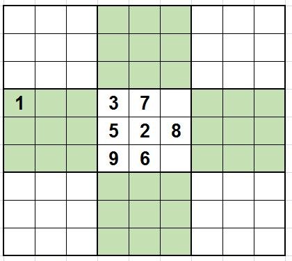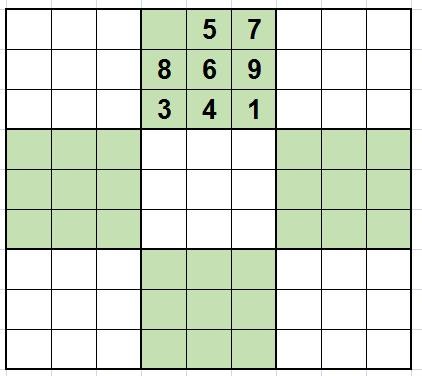 九宫数独的规则和四宫数独、六宫数独的规则相似,在每行每列每宫里只能出现1、2、3、4、5、6、7、8、9这九个数字各一次。