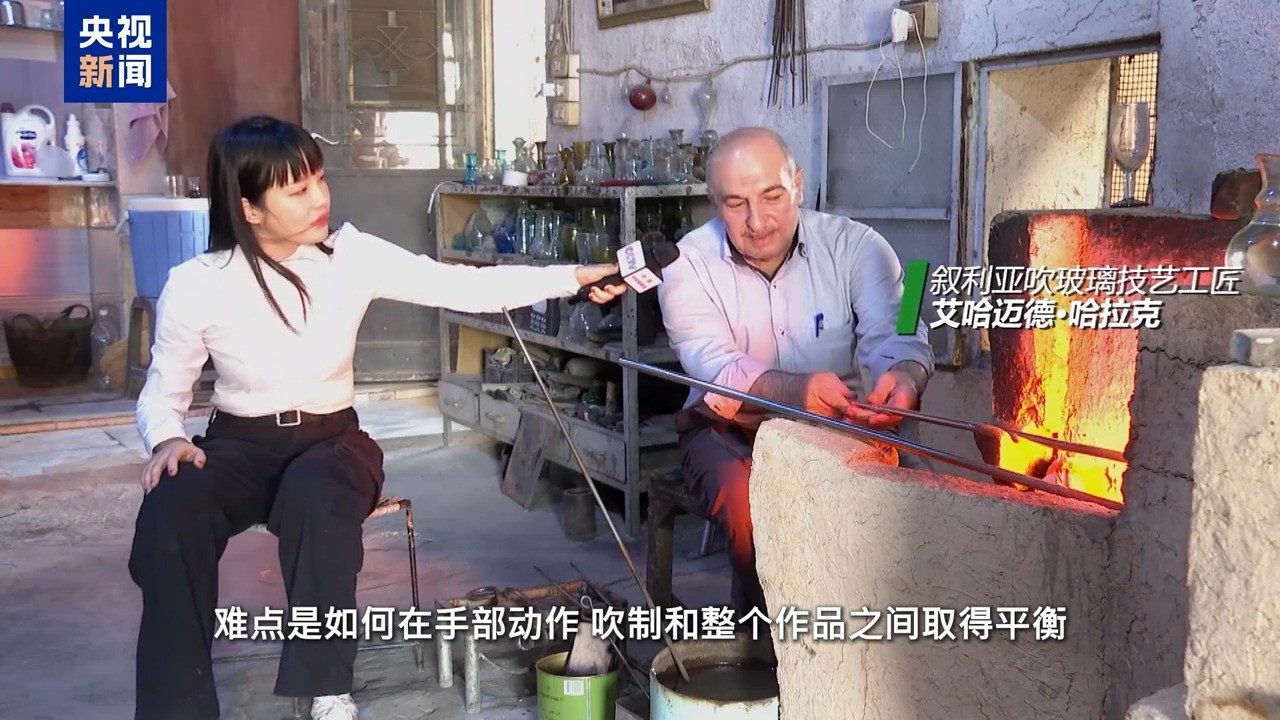 总台记者 王薇薇:吹玻璃作坊坐落在大马士革老城边的一个手工艺园区内,从现场的破败,我们可以看出十几年的战争给叙利亚的手工艺带来的困境。