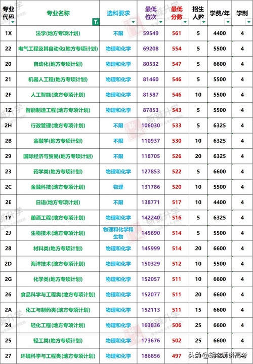相比其他省重点,齐工大农村专项的专业还是非常有良心的,不仅有热门的法学、电气、机械、自动化、人工智能等,也有本校强势的酿酒、食品、轻工等,给了农村考生更多的选择。