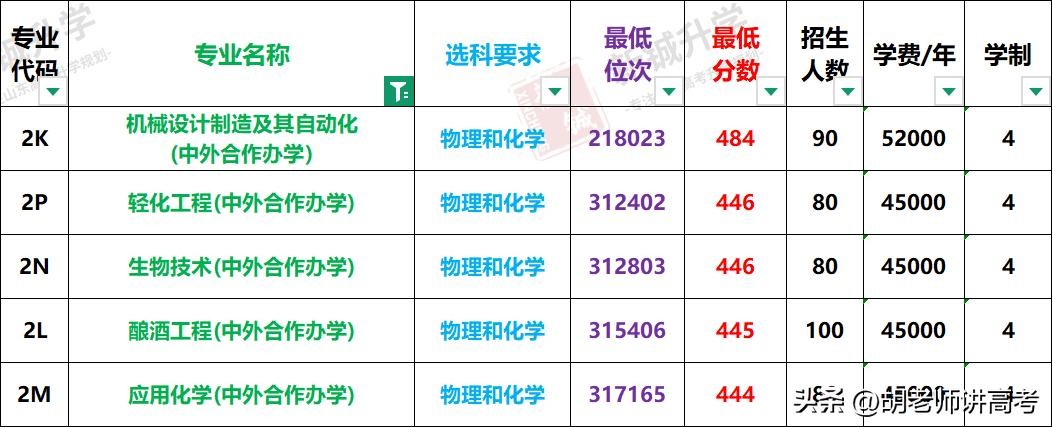 24年是山东新高考“物化捆绑”的第一年,也造就了很多“低分高报”的情况,齐工大、青科、青理工、山建、烟大、鲁东的中外合作专业都录到450左右,简直是天大的幸运。