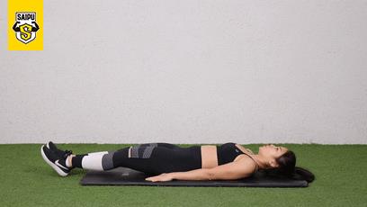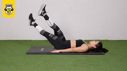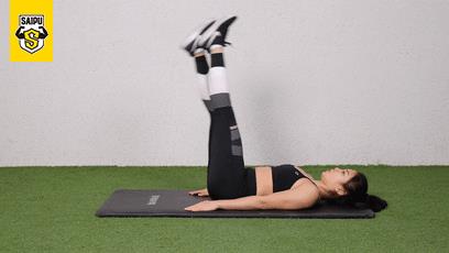 注意事项:仰卧在垫子上,双脚伸直,并将双腿抬至于地面垂直。保持呼吸均匀,双腿交替做小幅度的摆动,如图所示。
