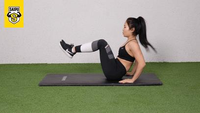 注意事项:臀部支撑在垫子,双手放在臀部后方两侧以稳定身体。吸气,双腿伸直,躯干后仰,此时双腿与躯干最大程度远离。呼气,双腿屈膝,腹部收缩,膝盖与胸部同时靠近。吸气远离,如图所示。