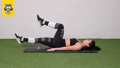 注意事项:首先仰卧在垫子上,双腿屈膝90度,并将小腿抬至与地面平行。保持呼吸均匀,双腿交替伸直下放,想象着在蹬单车,如图所示。